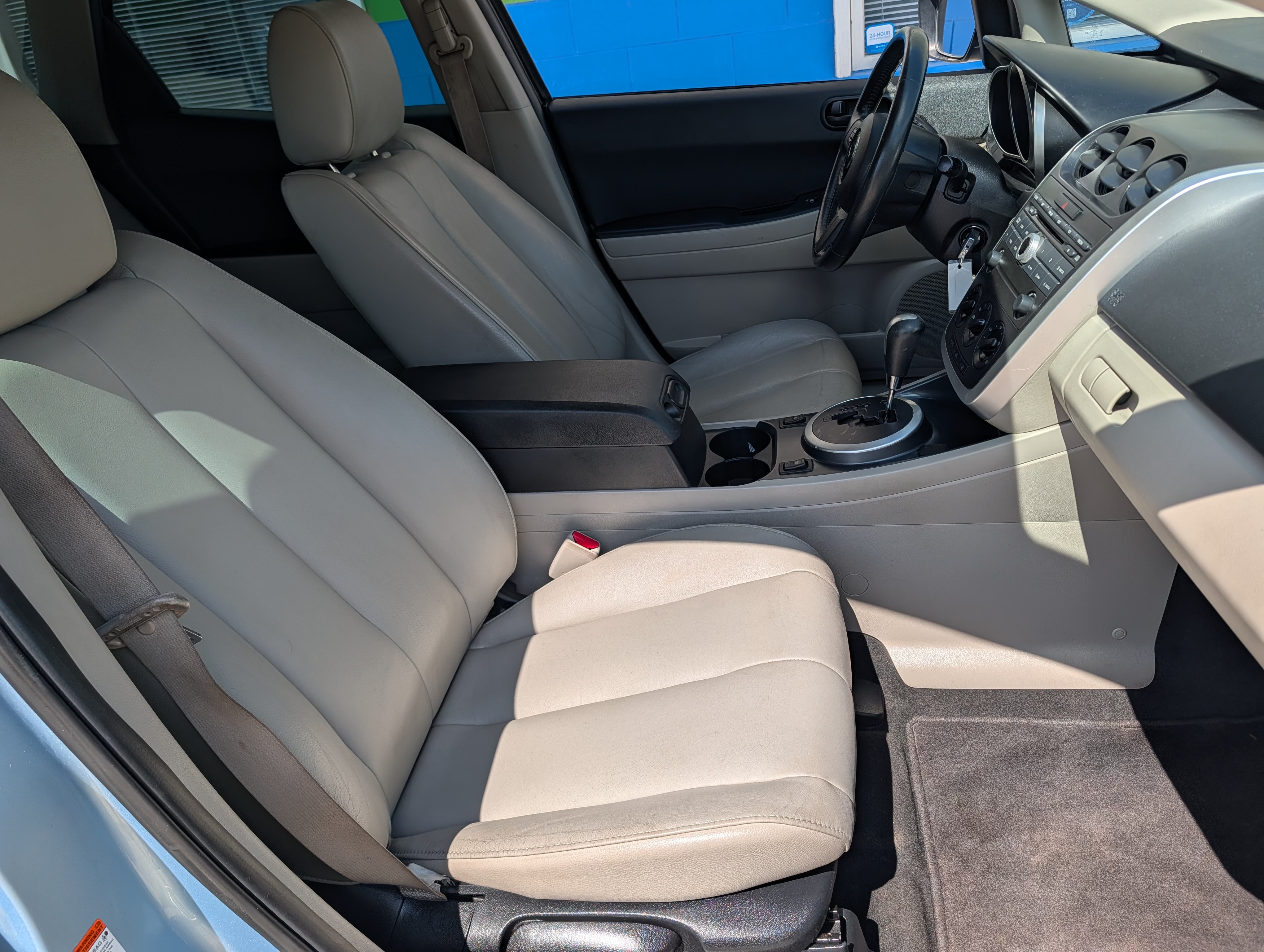 This little all wheel drive Mazda CX-7 Touring 4 cylinder turbo is a super cute color and runs great, has some really nice options and even comes with our FREE powertrain warranty! Heated leather, nice tires and rims, power seat, good sound system, tint, dual exhaust, all the safety features, cruise, keyless entry and more. The leather is in oustanding shape. There are some scratches in the back bumper but overall for the year and at this price this is really a very nice vehicle! Yes it's a little older but it really is very nice! Priced right and ready to go! Lots of new parts! Listed prices do not include the state doc fee (only $200), state sales tax, new title and registration. We happily take trade-ins and we also buy vehicles outright. We have access to lenders that can help get you approved for great, good, fair and poor credit. We absolutely want to help if we can! If you have your own lender we can get you what you need no problem. We NEVER buy our vehicles from these big auction houses where you have no idea what you are going to get! Proudly serving our community since 2014.